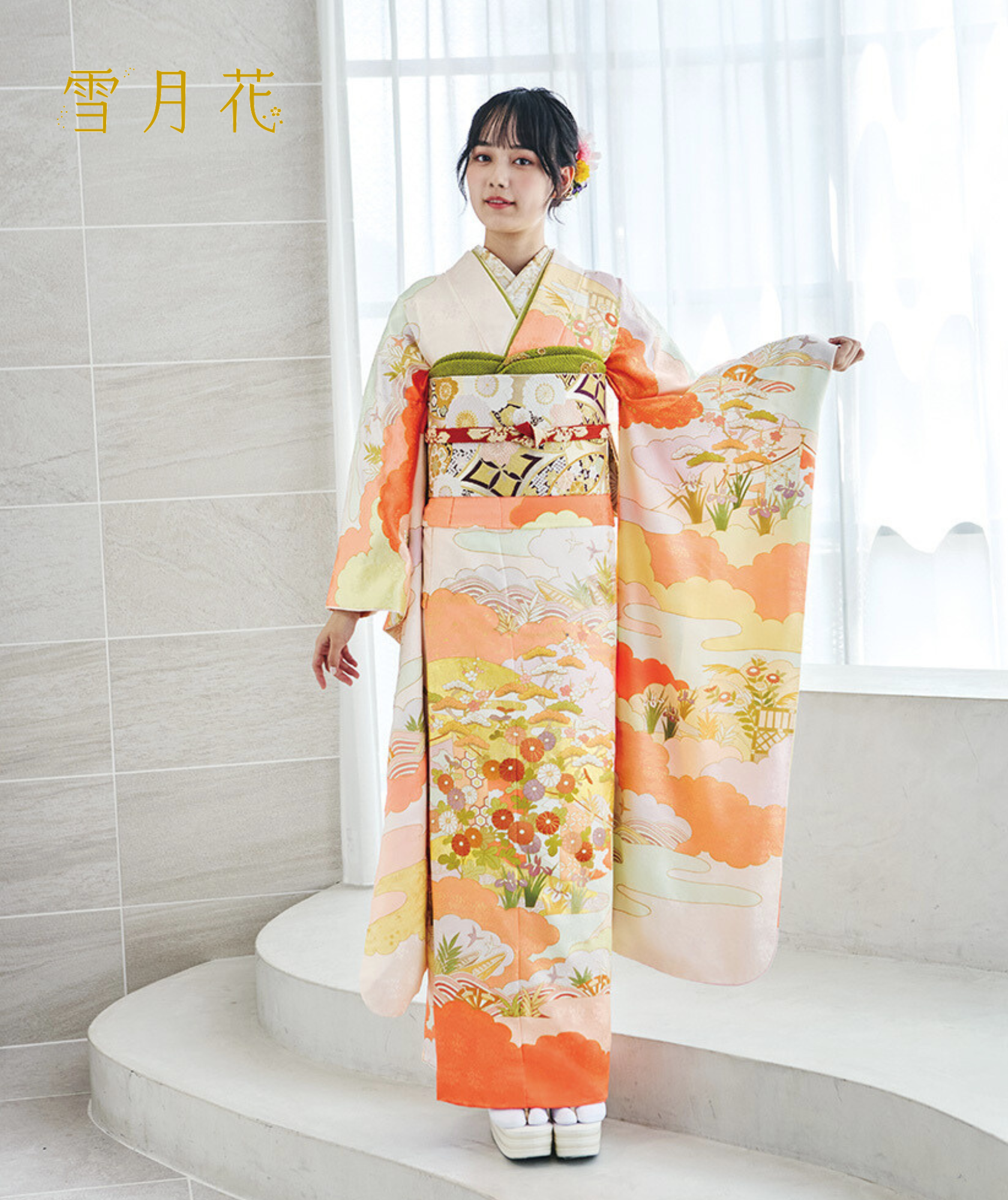 また、振袖の帯や小物に、イエベさんの得意な朱色やゴールド、緑などを取り入れると、全体が引き締まり、華やかさが増します。