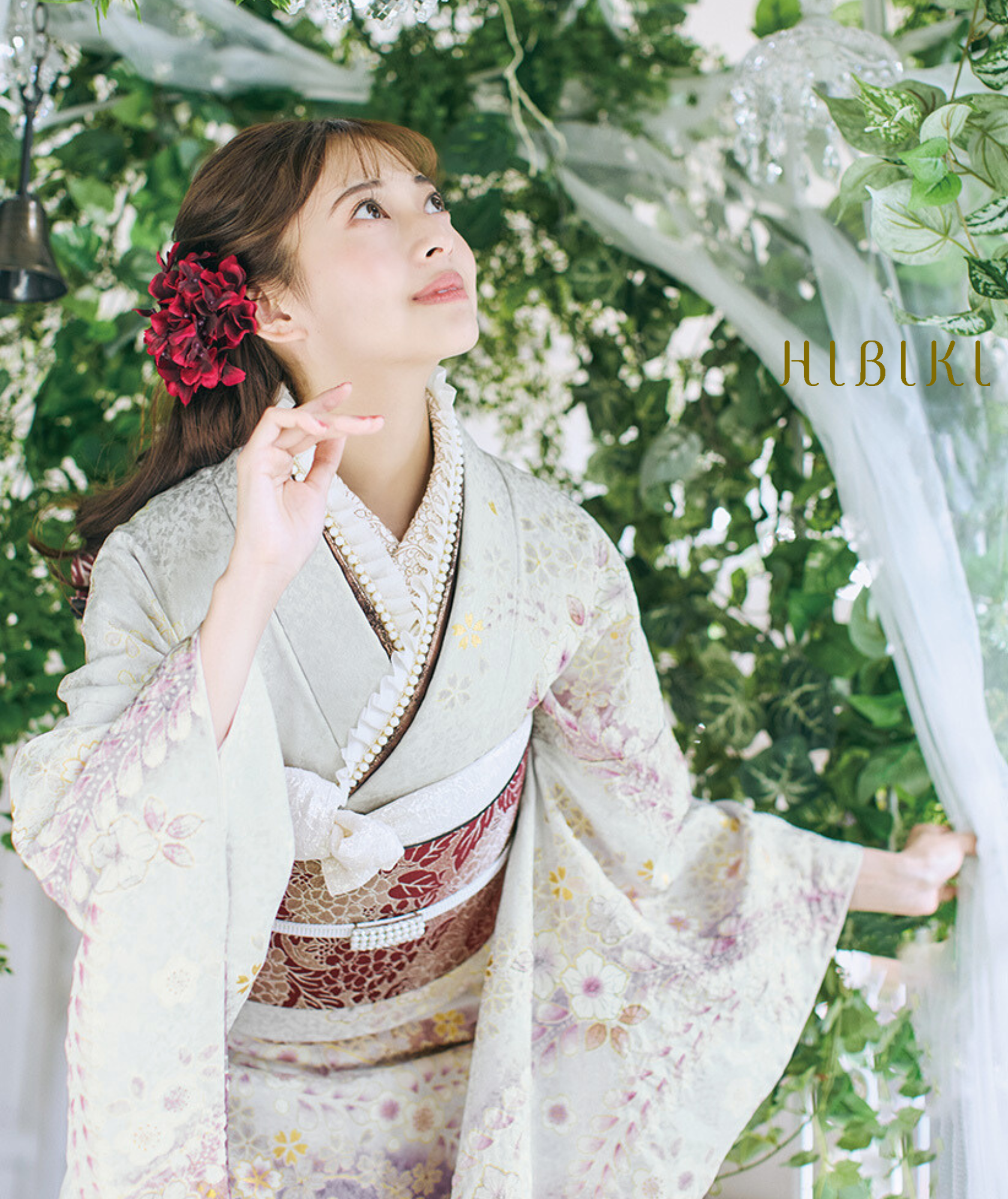 振袖に含まれる色や質感とリンクさせると、全体にまとまりが生まれ、より完成度の高いスタイルに仕上がります。