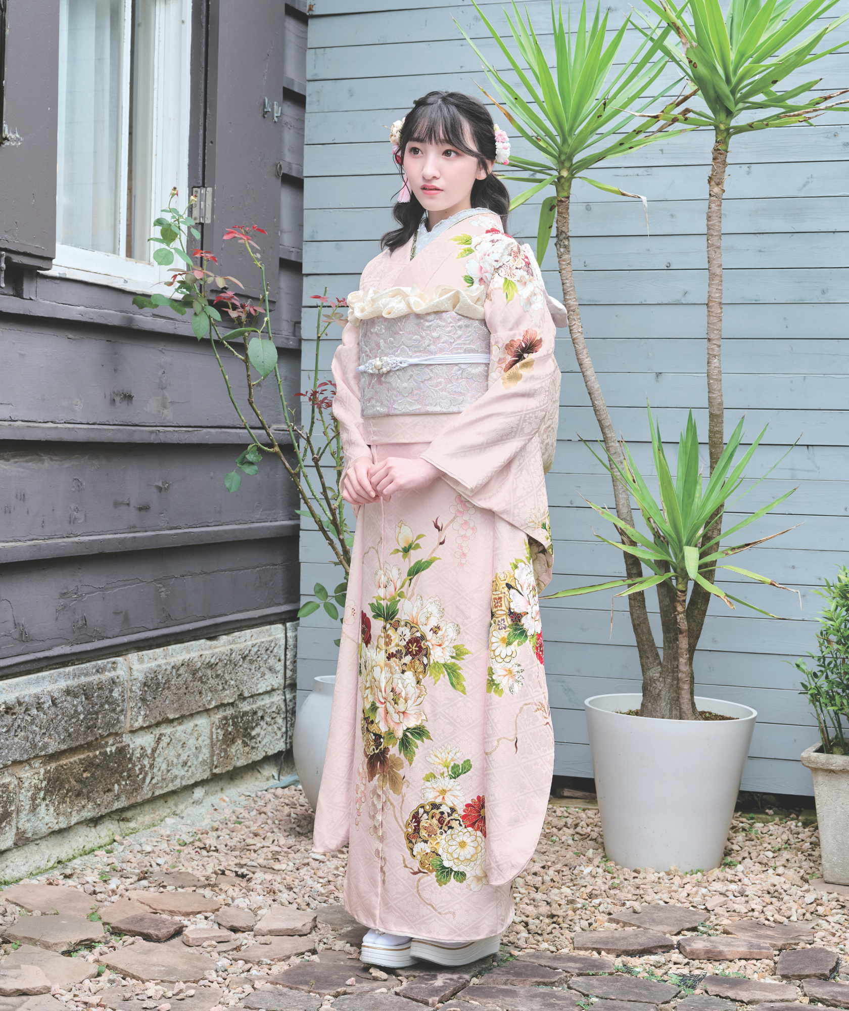 淡トーンの振袖は、「小物」や「着こなし」次第で、誰よりもオシャレに、最先端のトレンドコーデが完成します。