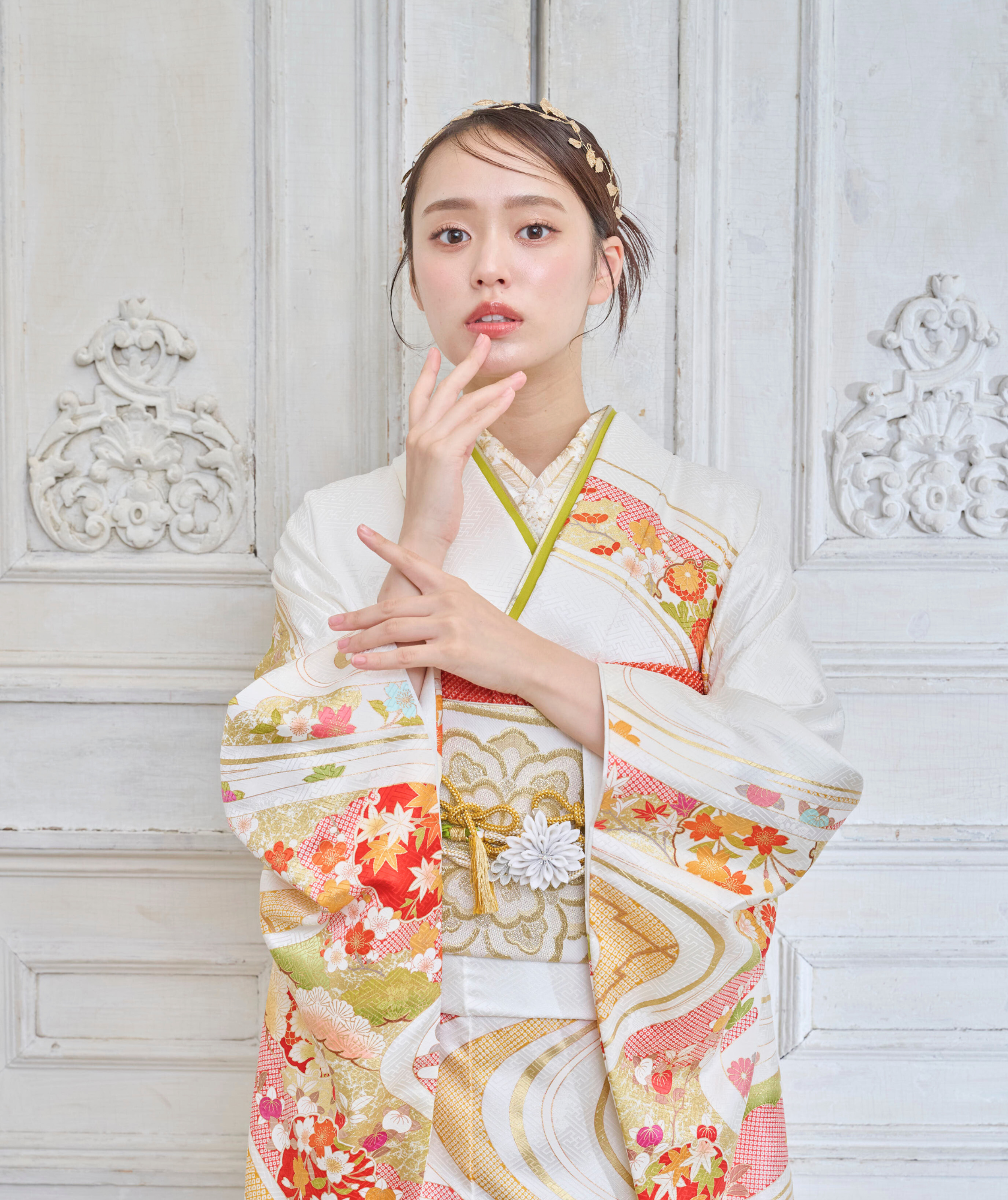 振袖姿はとても美しく映えますが、一方で「顔が間延びして見える」という不安を持つ方も。