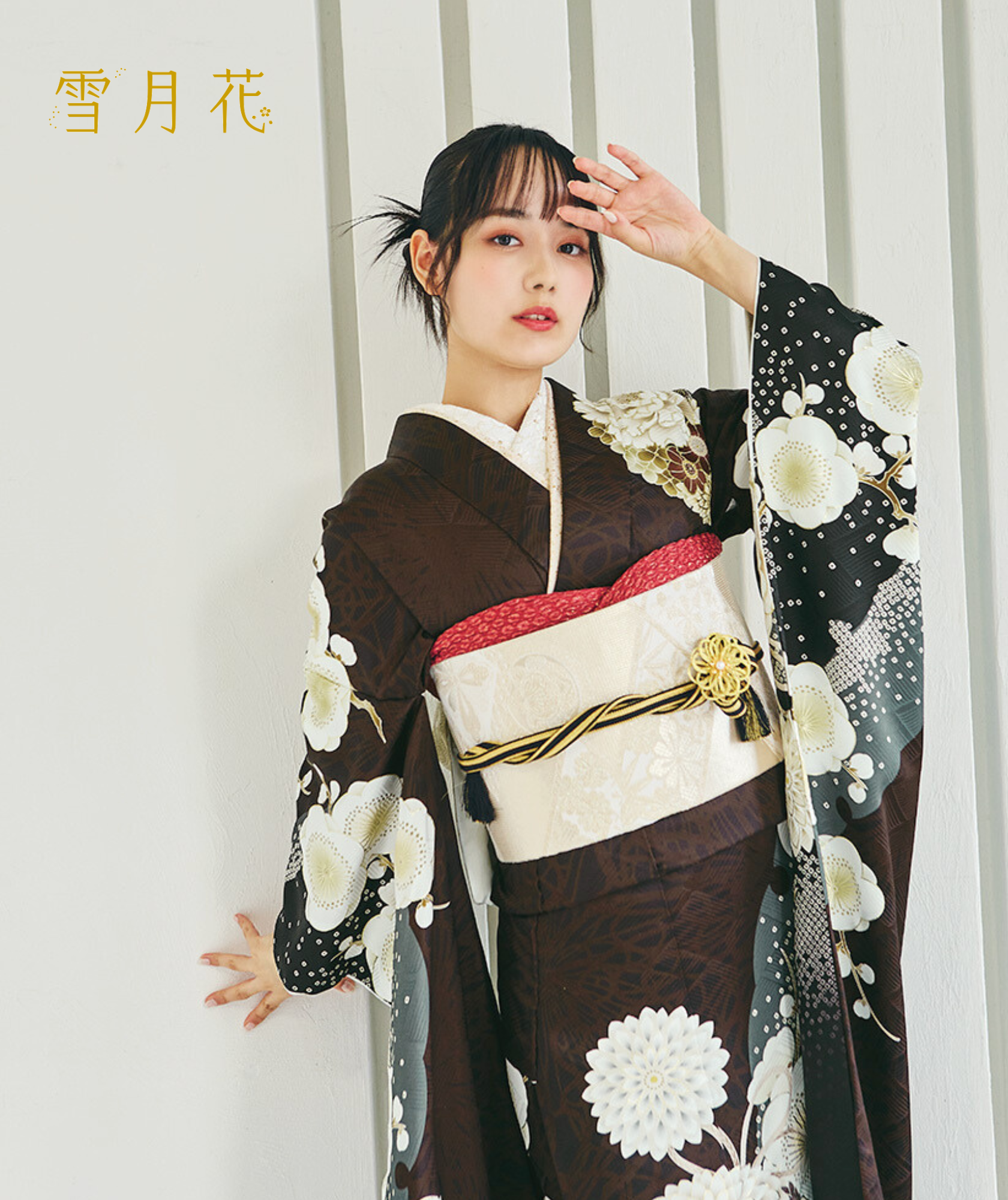 振袖の柄や色が強めの場合、直線的な前髪でバランスをとるとモード感が増します。