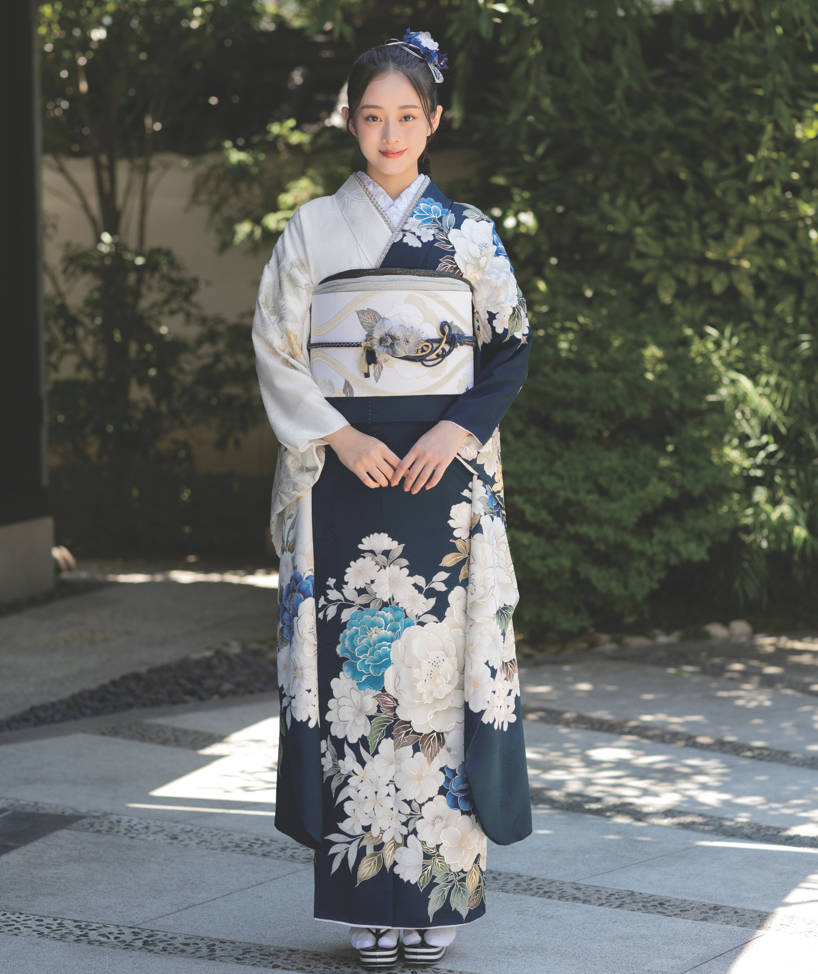 クールな寒色系の振袖には、「ラベンダー」や「青みピンク」で透明感を底上げしましょう。