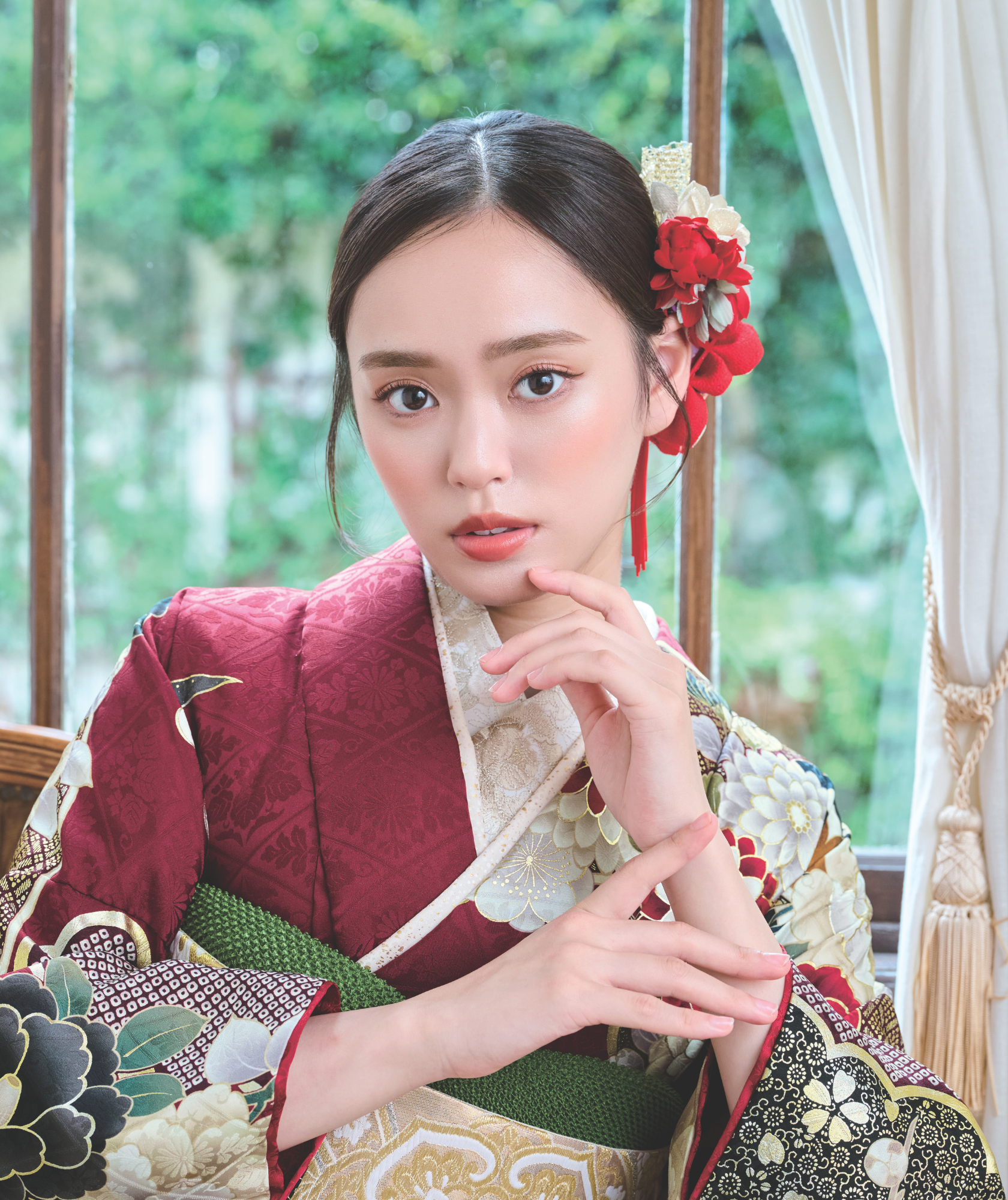 「振袖にはマットな赤リップ」